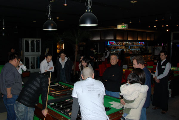 21時から夜中の1時まで、2人も入れてリーグ戦。買う・買わないは別にして、皆1人1人満足したようだった。2人とも疲れも見せずに撞いてくれ、新しい友人もできた。