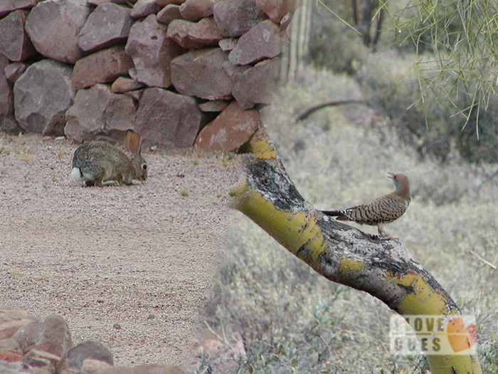 夕方の散歩にはコヨーテや野ブタや鹿、ボブキャットなどに出会ったりしますが、朝の散歩はウサギやリス、土ねずみ、そしてたくさんの鳥たちが見られます。