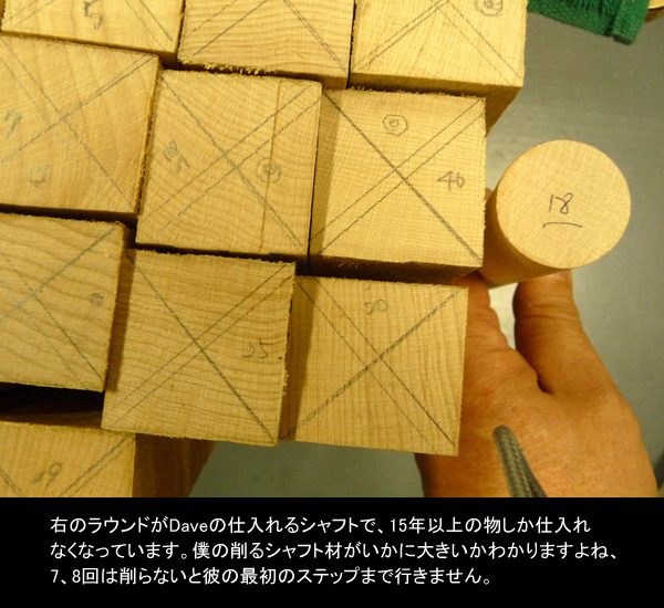 ここから、というか、最後の段階に仕上がるまでのシャフトは少しずつテーパーをつけて削るだけなんです。
