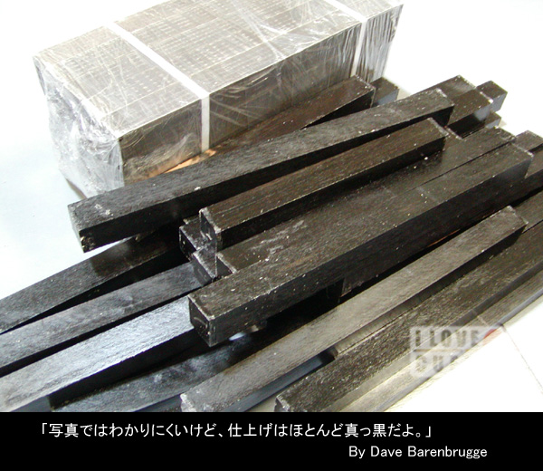 ハギとスリーブとか、フォアアームとスリーブとして用いる際に、他の素材のように同じところのものを使わなくてはいけない、と言うことが黒檀にはありません。6インチの長さのものがあればスリーブに使えます。他の木材では6インチではだめで、最低12インチ、できれば18インチか20インチが欲しいのです。12インチはハンドルかフォアアーム、18インチはフォアアームとスリーブ、20インチはそれにジョイントキャップ…、わかりやすいでしょ。