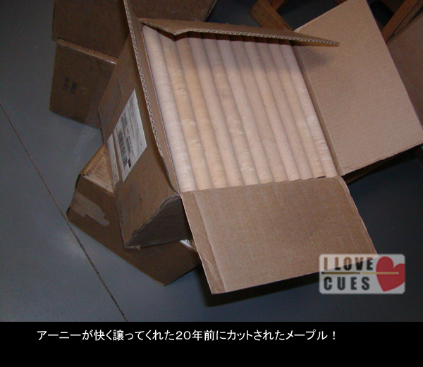 キュー作りを始める前までも私は木材が好きで、アメリカの業者にも何度か足を運んだことがありました。が、購入するに当たり、これほど時間がかかり、待たされるとは思ってもいませんでした。電話で注文⇒次の週には届く、というのが我々日本人の感覚ではないですか?私はただ、それにプラスで欲しいレベルの品質を伝えて、業者さんに選別してもらい、その届いた中で気に入らないものは返品する、と言っただけなんですがね。おかしかったですかねぇー…、まさか嫌われちゃ、いないだろうね…。