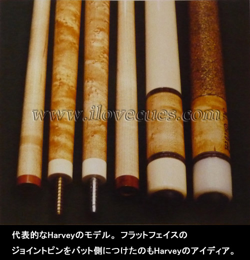 「その点ではHarveyのスタイルを正統的に継承して作り続けているCuemakerは誰ひとりとして存在していないし、残念ながら自分の追い求めた撞き味を同じようにコアせずに木材だけで丹念に作っているメーカーもいないんじゃないかな?Padgettは辞めてしまったし、Blue Grassは似ているけどテーパーが違う。Prewittも最初の頃のはね、でも今は全く違うよ、全部コアして芯材を入れている。Mc WorterやChudyも自分の物とは似ていないね。Manzinoもね。誰かいないかなぁ、フラットフェイスで1本1本を僕らのように手をかけて作ってくれる人は…、そうしたら良い夢が見られるのに。ね、Harvey…」(幕)